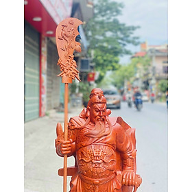 Mua tại TiktokTượng quan công đứng trên gốc cây tùng được làm bằng chất liệu gỗ hương đá tự nhiên 100%