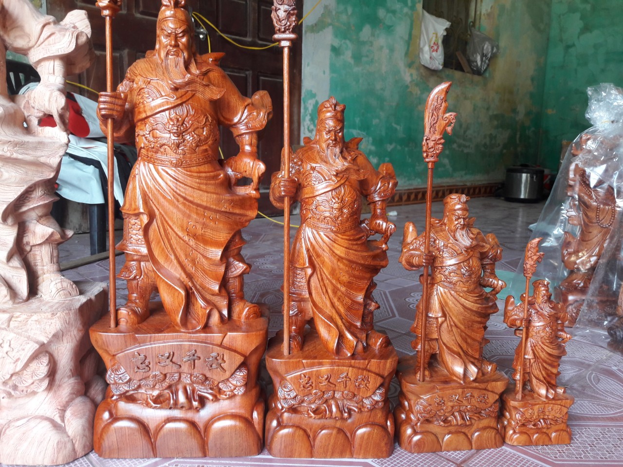 _ Bộ tượng tứ đại kim cương được làm bằng chất liệu gỗ hương đá liền khối tự nhiên 100% _ Kích thước cao 30×13×8cm _ Bộ tượng tứ đại kim cương được trạm khắc