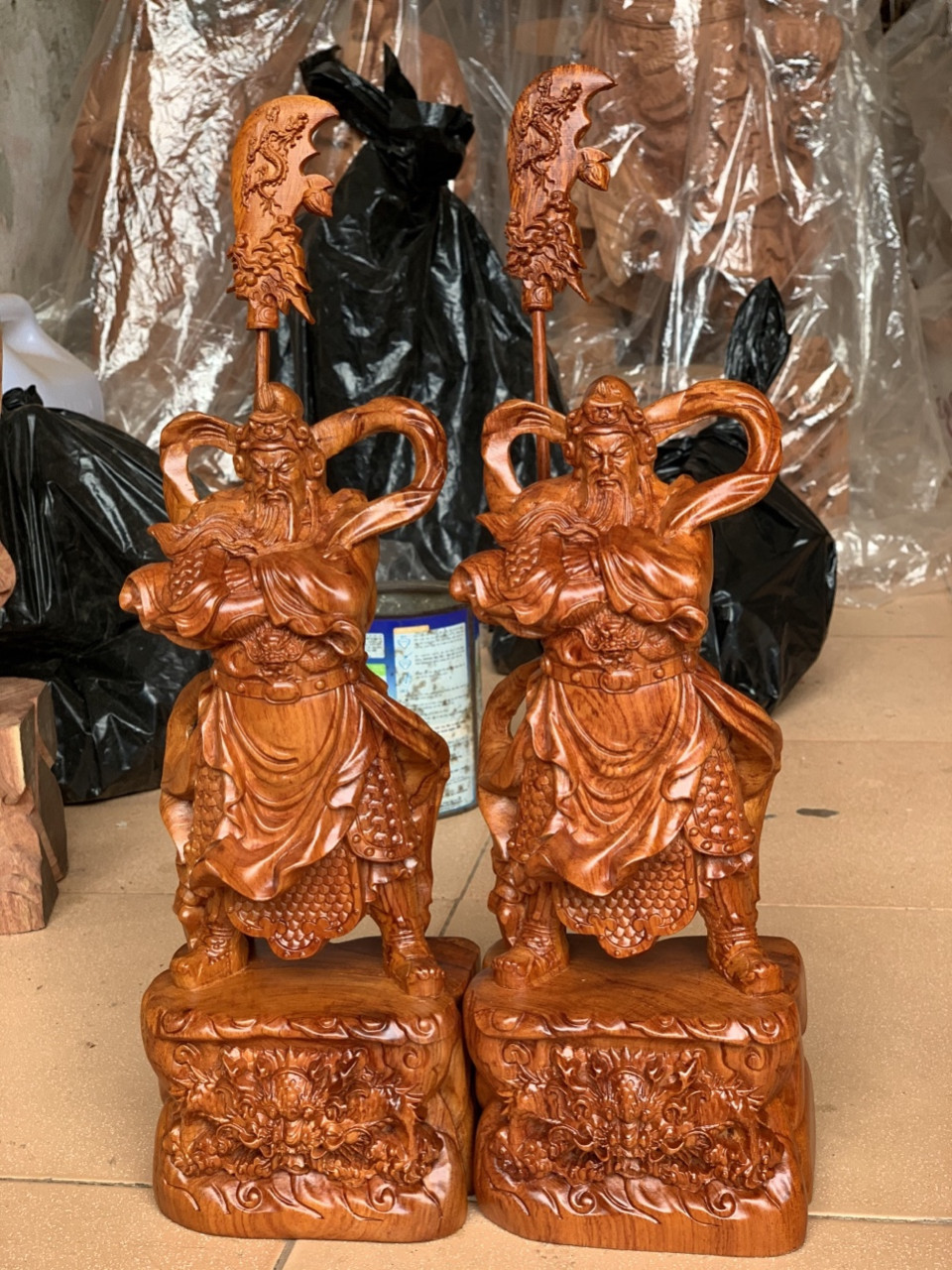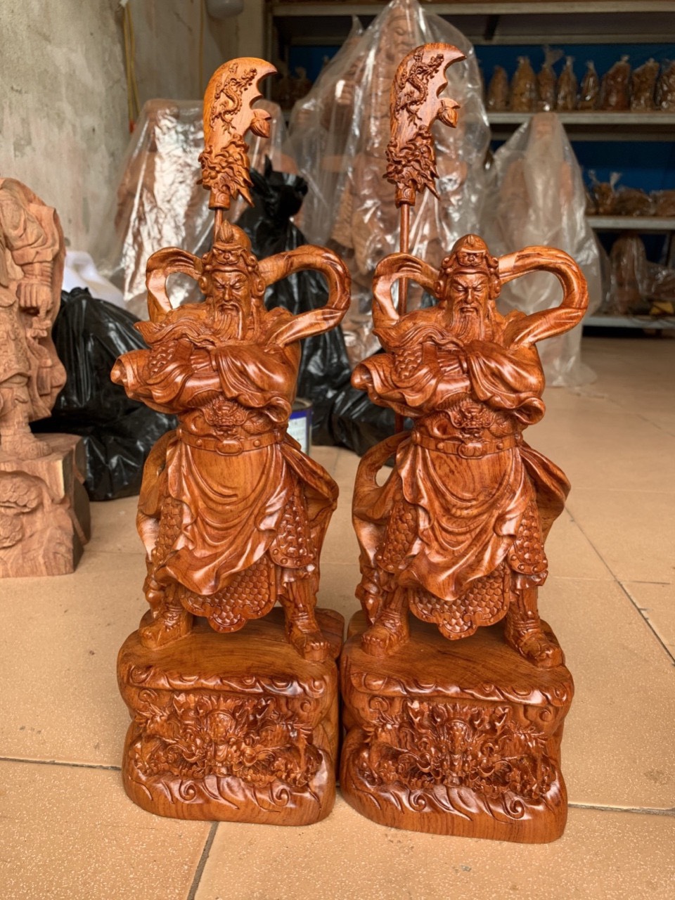 Tượng Quan Công Hàng Song Long Gỗ Hương Ta- Nghệ Thuật Chạm Khắc Thủ Công Siêu Đỉnh - 0938.410.333