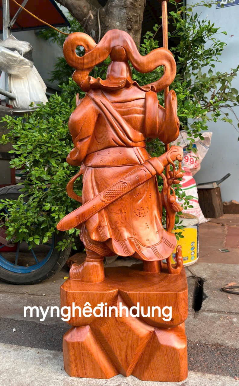 Tượng Quan Công đứng cầm đao cao 80cm | Quan Thánh gỗ hương đứng trấn ải