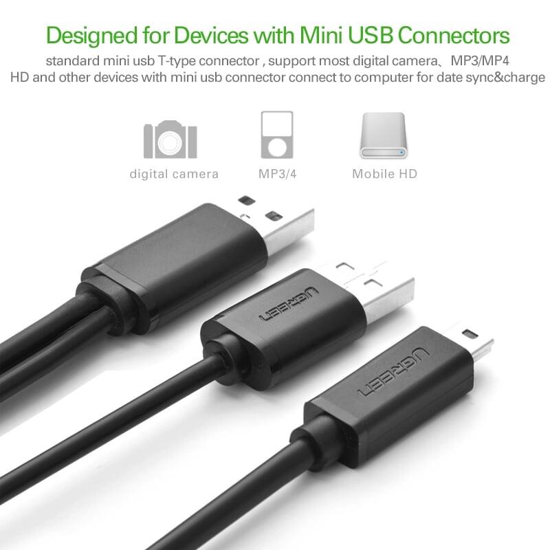 Mua tại TiktokUgreen 10346 0.5m usb a male x2 to mini 5pin cable us107