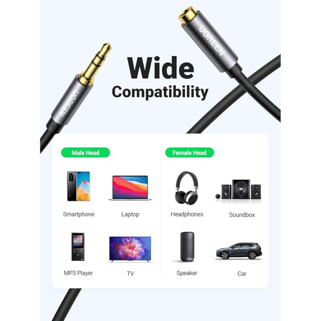 Ugreen 10737 3.5Mm Male To 3.5Mm Male Cable 5M AV119 1. Features: Cables for connecting phones, laptops, tablets with handsets. 2. Cable length: 5M 3. Color: Black 4. Jack: 2 * Audio 3.5mm Male. 5.