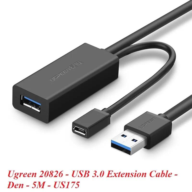 Ugreen 20826 5m usb 3.0 extension cable đen us175 1. Length : 5M 2. Color : Black 3. USB Version : 3.0 4. Data Transfer Link Cable USB 3.0 5. 300 g 6. 20 x