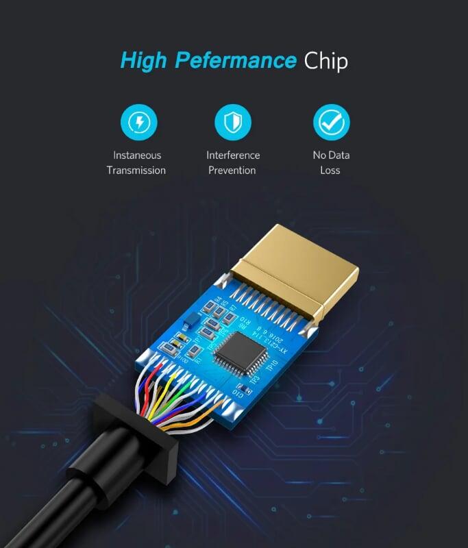 1. 8K resolution support at 60Hz and 4K resolution support at 120Hz for high-definition video and audio. 2. HDR (High Dynamic Range) support for improved color depth, contrast, and brightness. 3. Plug-and-play design, no additional