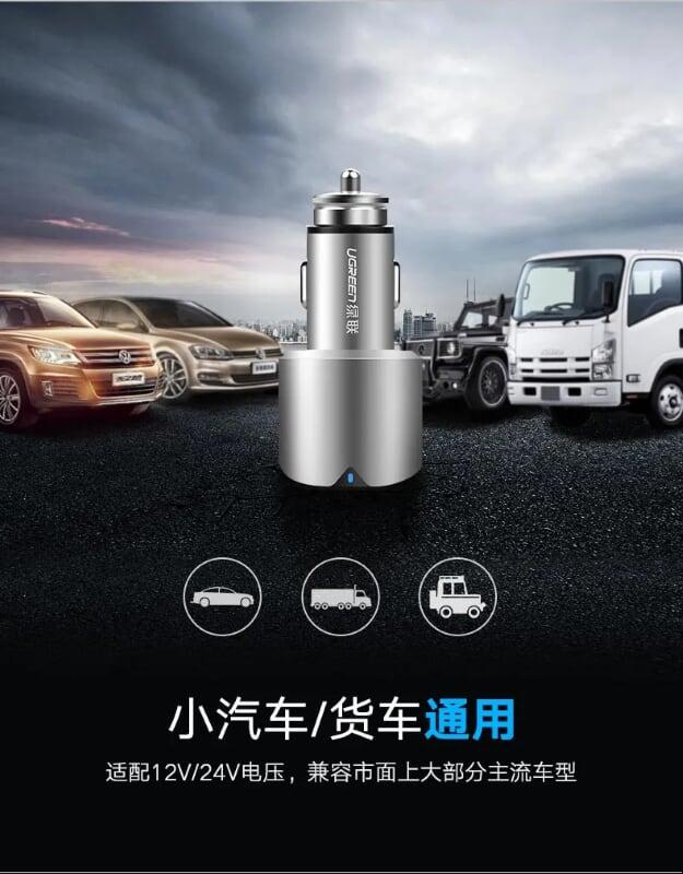 Mua tại TiktokUgreen 40733 3 Port Strong Car Charger 1A + 2X 2.4A Sạc Xe Hơi Ô Tô Cd165