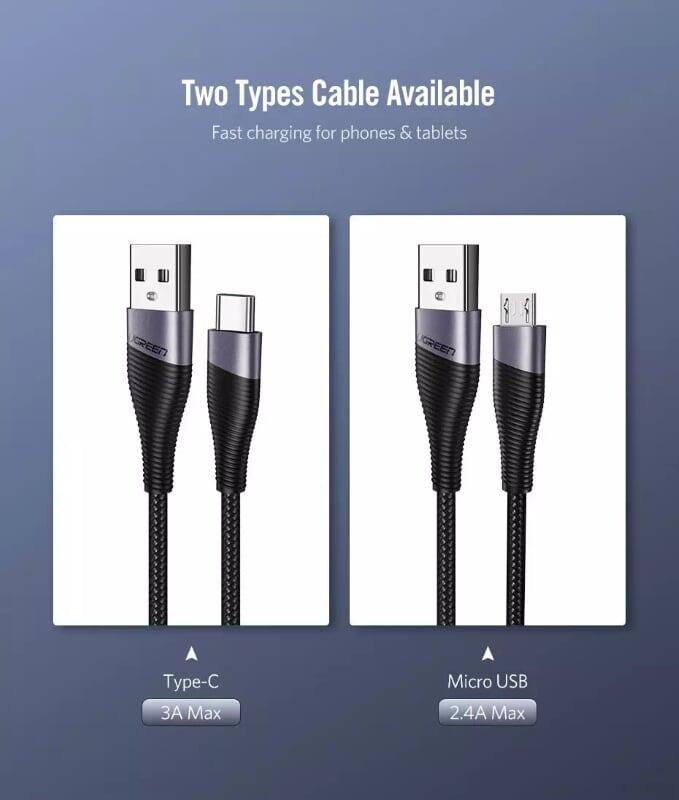 Cáp sạc nhanh USB Type C (1 đầu USB, 1 đầu USB Type-C) độ dài 2m UGREEN US28 (Giá 74k)