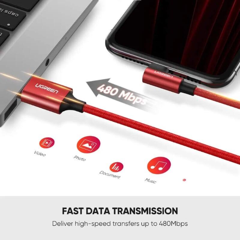 ✨Ugreen UG60555US299TK 1m cáp usb lightning bọc nhôm chống nhiễu góc 90 độ màu đỏ - HÀNG CHÍNH HÃNG