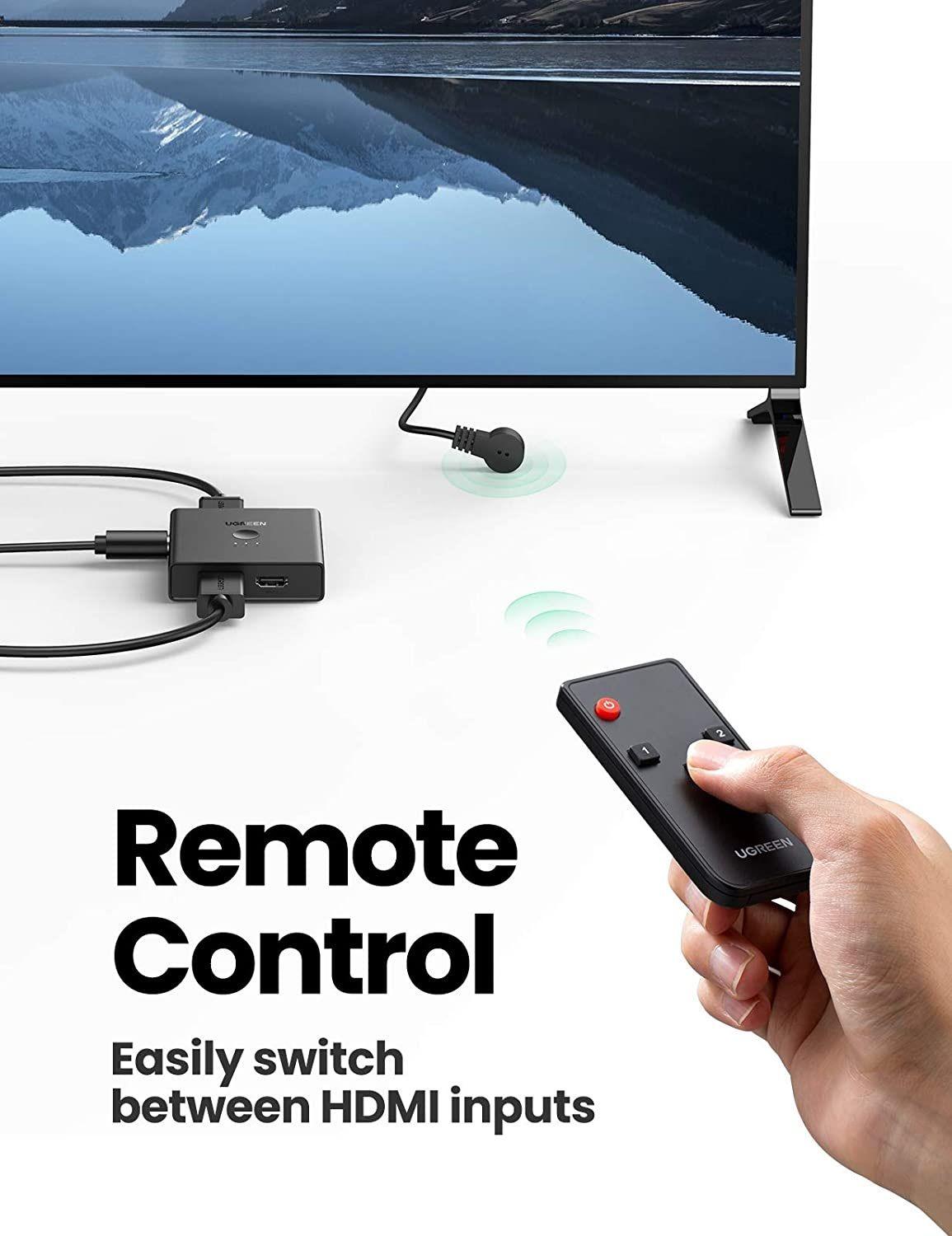 1. UGREEN 2 IN 4 OUT HDMI switcher offers an easy solution for you to share 2 devices to 4 monitors such as Mac book, PC with your HDTV for video output, saves the cables