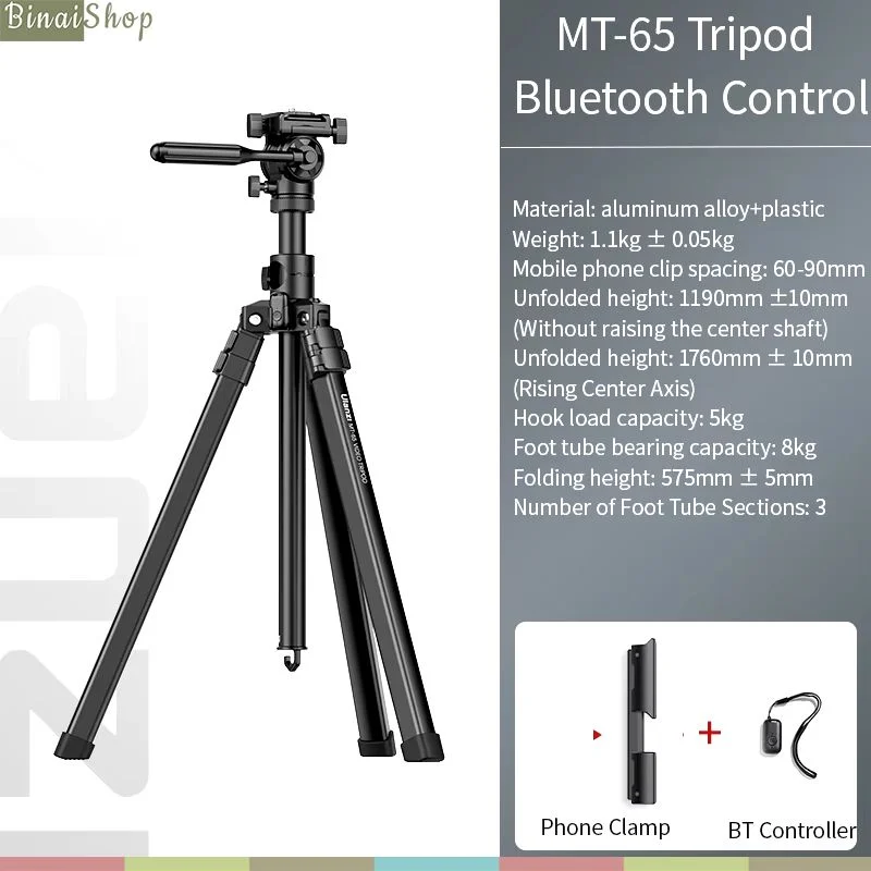 Ulanzi MT-65 Chân Đế Di Động Điều Khiển Từ Xa Bluetooth Dành Cho Máy Ảnh, Điện Thoại, Tải Trọng 8Kg