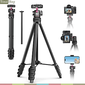 - Chiều cao có thể điều chỉnh với chân 4 đoạn và một cột trung tâm, cố định 3 chân chắc chắn bằng khóa đòn bẩy. Chiều cao mở rộng tối đa là 1380 mm.