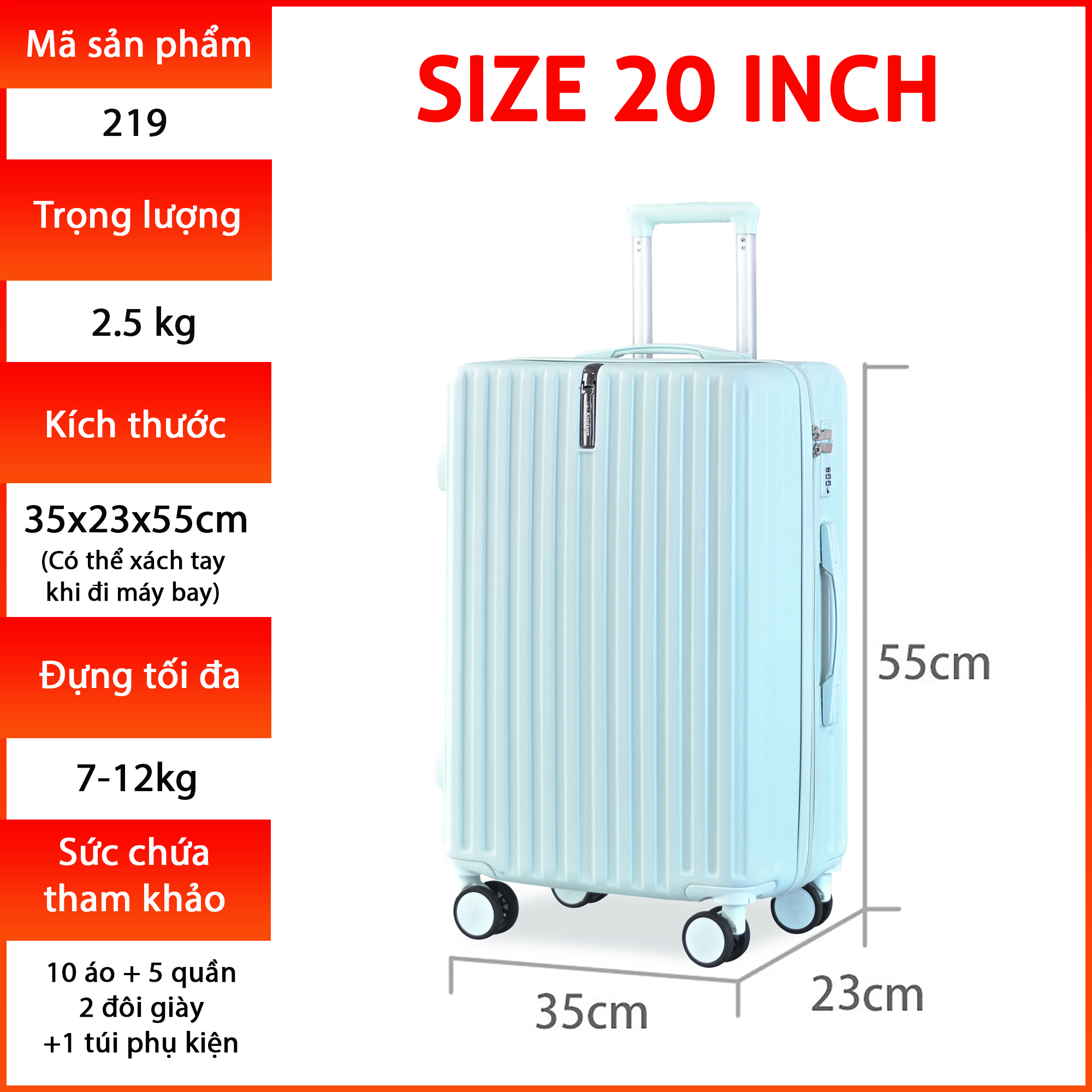��� Size 28 ạ: Ngang 48cm x Rộng 32cm x Cao 76cm, đựng được 30-35kg hành lý tương đương với 20 bộ quần áo.