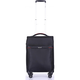 Vali Kéo Du Lịch  đen Phối  đỏ Có Nắp - 22 Inch được thiết kế từ chất liệu vải Polyester có độ bền cao, chống thấm nước tối ưu giúp bảo vệ hành lý bên