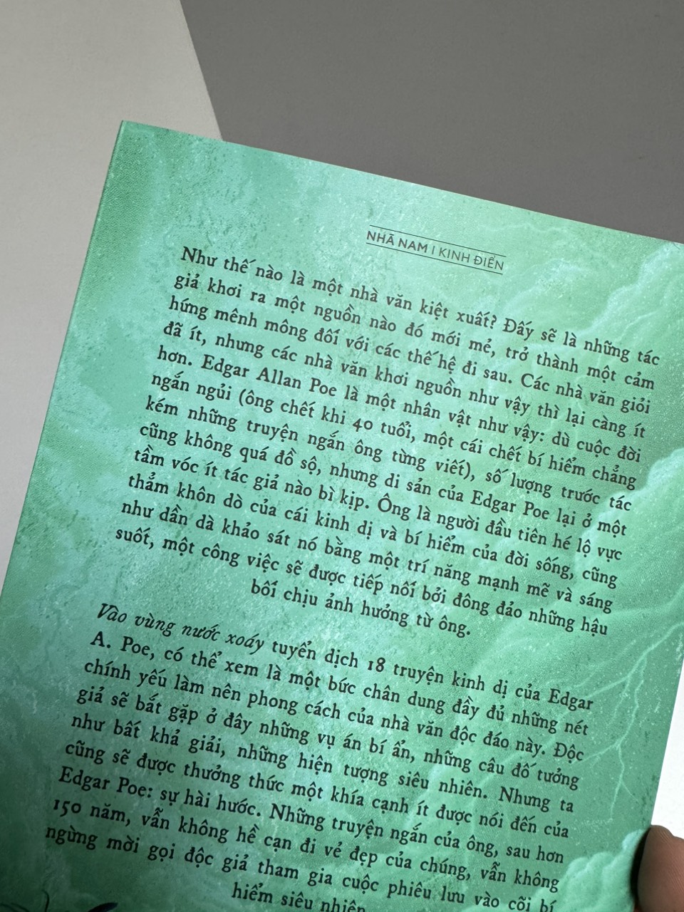 Như thế nào là một nhà văn kiệt xuất? Đấy sẽ là những tác giả khơi ra một nguồn nào đó mới mẻ, trở thành cảm hứng mênh mông đối với các thế hệ đi sau. Các nhà văn giỏi đã ít, nhưng các nhà văn khơi nguồn như vậy thì lại càng ít hơn. Edgar Allan Poe là một nhân vật như vậy: Dù cuộc đời chỉ vỏn vẹn bốn mươi năm ngắn ngủi, số lượng các tác phẩm cũng chẳng quá đồ sộ, nhưng tầm vóc của những tác phẩm ông để lại cho hậu thế lại chẳng mấy nhà văn có thể bì kịp. Ông là người đầu tiên hé lộ vực thẳm khôn dò của cái kinh dị và bí hiểm của đời sống, cũng như dần dà khảo sát nó bằng một trí năng mạnh mẽ và sáng suốt, một công việc sẽ được tiếp nối bởi đông đảo những hậu bối chịu ảnh hưởng từ ông.