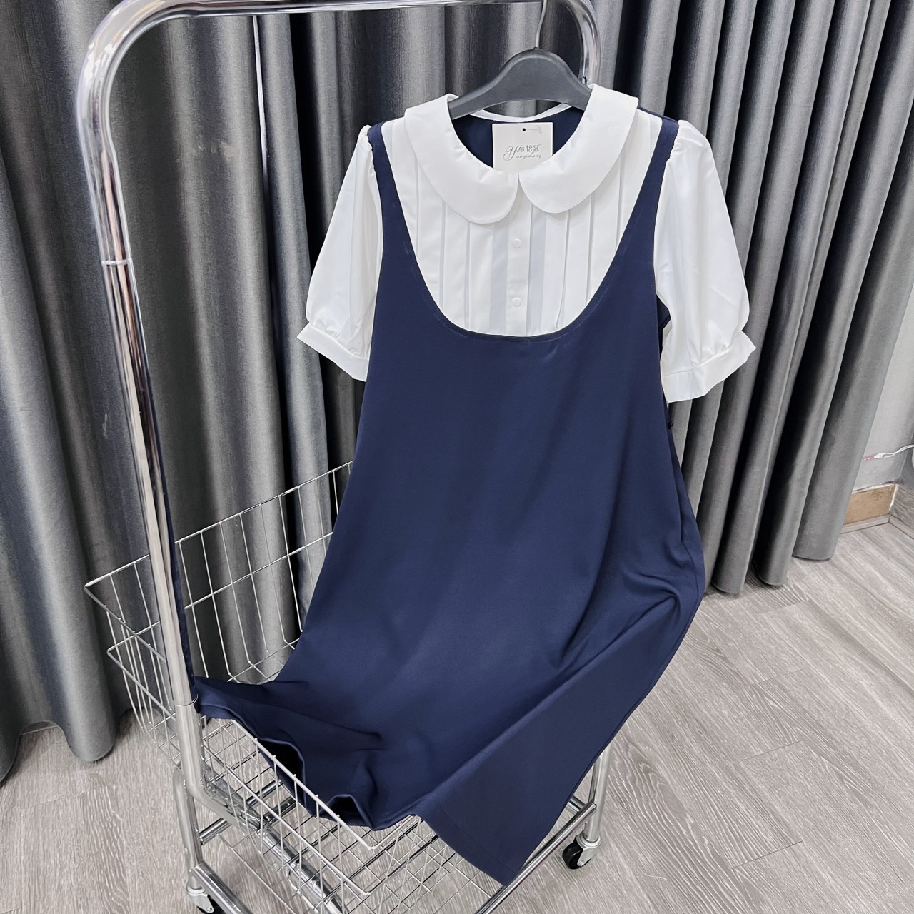 Váy bầu yếm liền thân phối cổ sơ mi đẹp, đầm yếm bầu công sở, MLEE SHOP