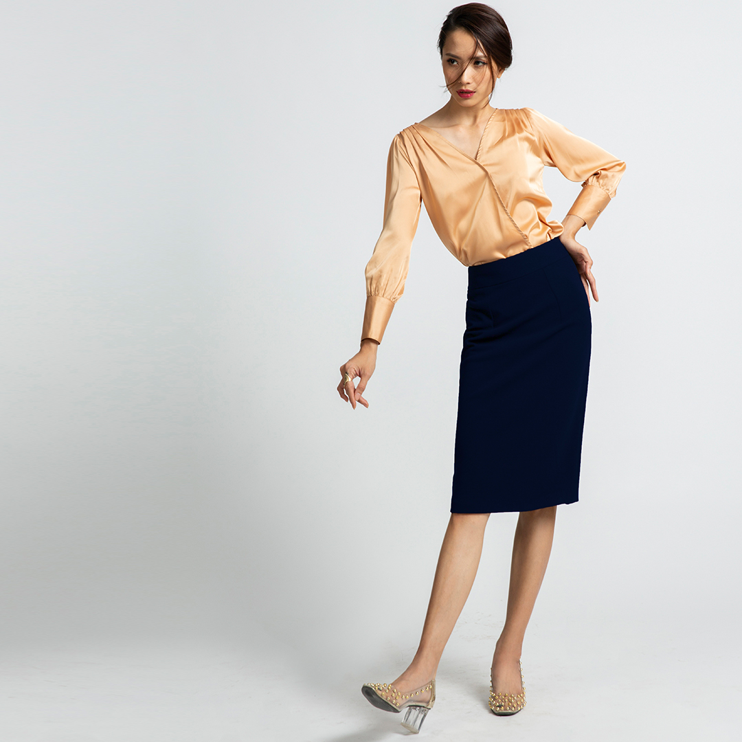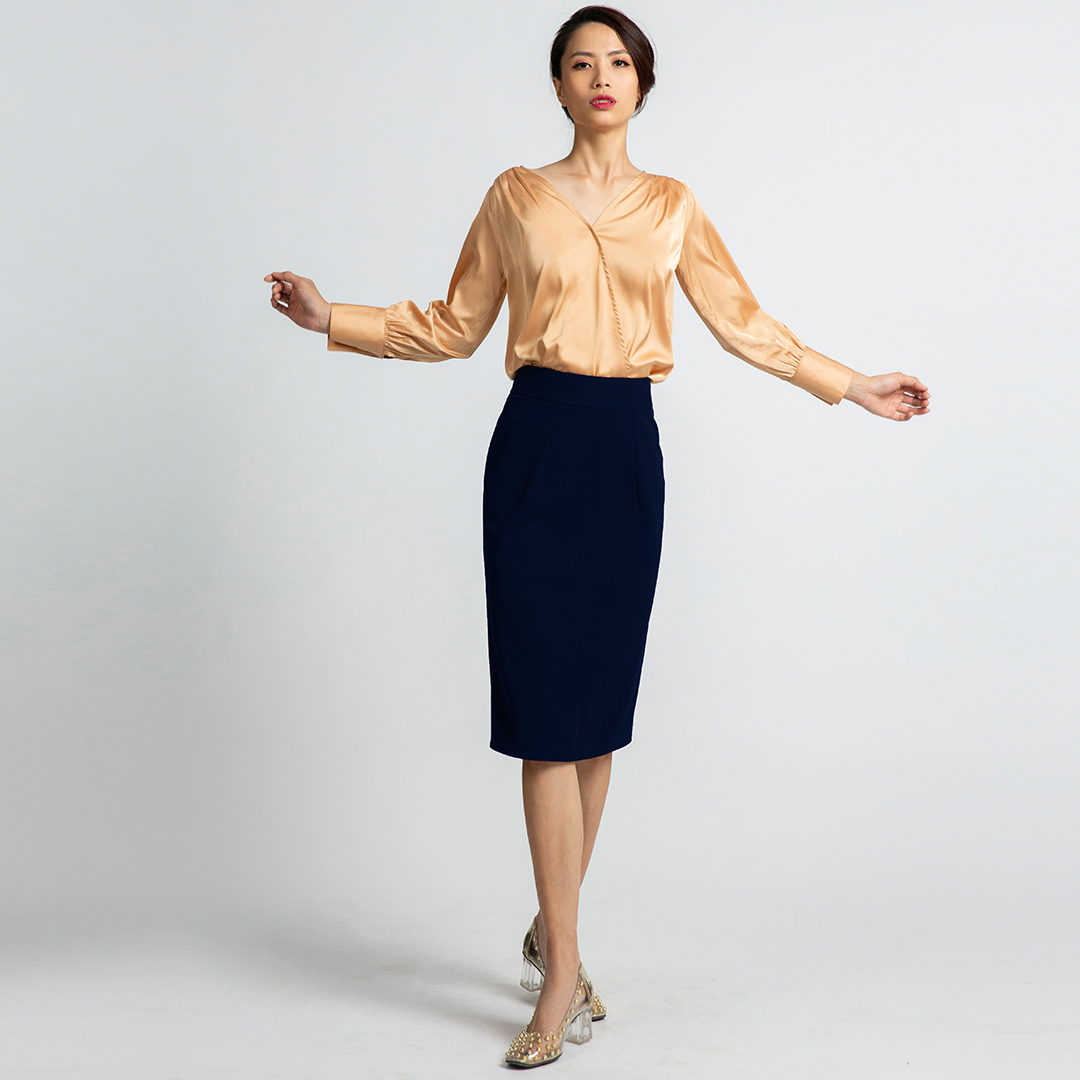 - dáng váy bút chì dài vừa qua gối