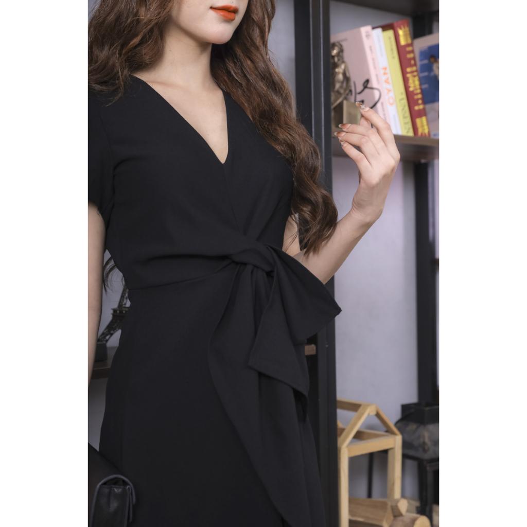 ✨Váy Chữ Chéo Eo Màu Đen Cao Cấp 23V040 Pi Style