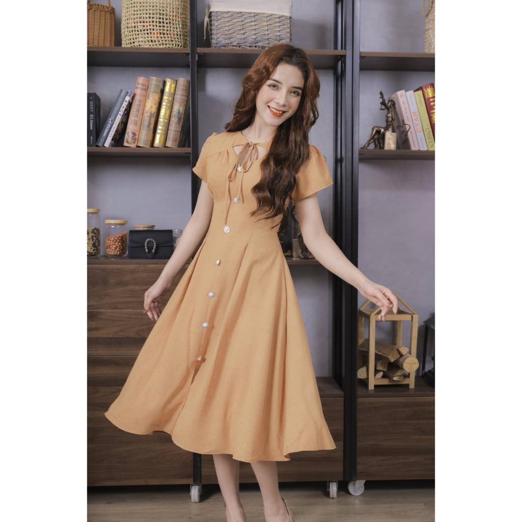 ✨Váy Nữ Vải Xước Màu Be Cao Cấp 23V043 Pi Style