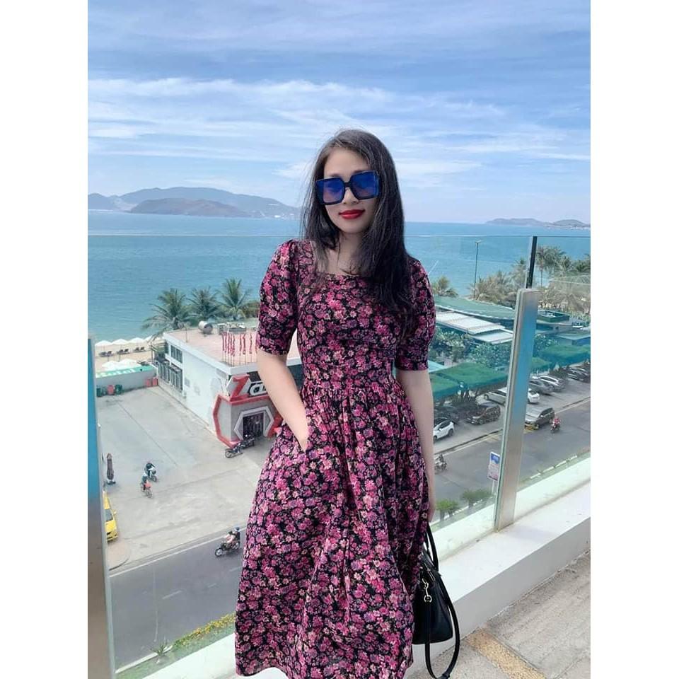✨VÁY NỮ XOÈ HOA TÍM TAY PHỒNG