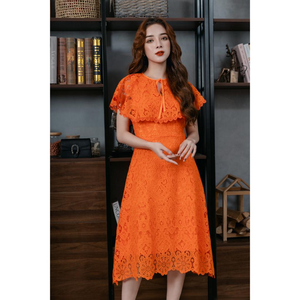 ✨Váy Ren Bèo Cổ Màu Cam 23V005 Cao Cấp Pi Style