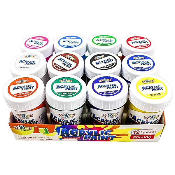 Vỉ 12 Màu Acrylic 50 ml - Stakids SK_AC050 - Bộ Màu Acrylic được làm từ chất liệu cao cấp nhanh khô, độ bám dính tốt, bền màu cao cho độ sánh và phủ màu