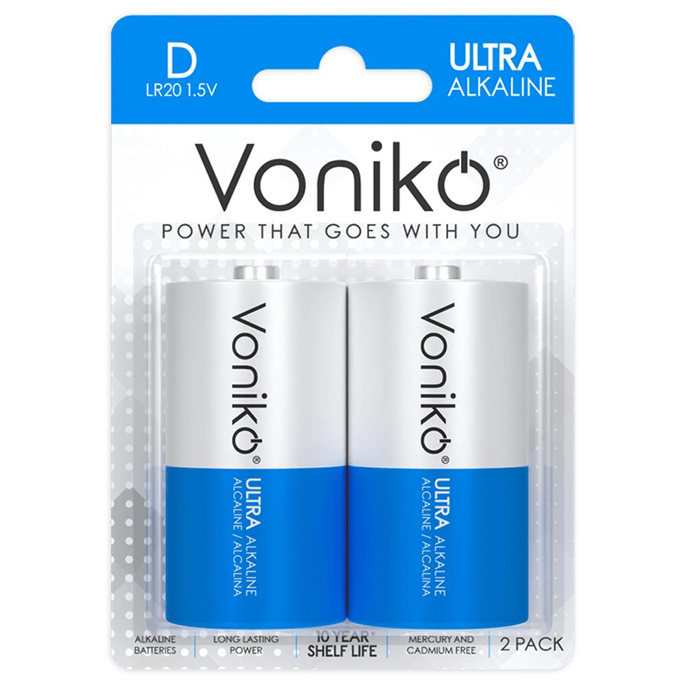 Vỉ 2 Pin Kiềm D 1.5V - Voniko - Pin loại D là một loại pin có kích thước lớn, thường được sử dụng trong các thiết bị điện tử như đèn pin, đồ chơi,