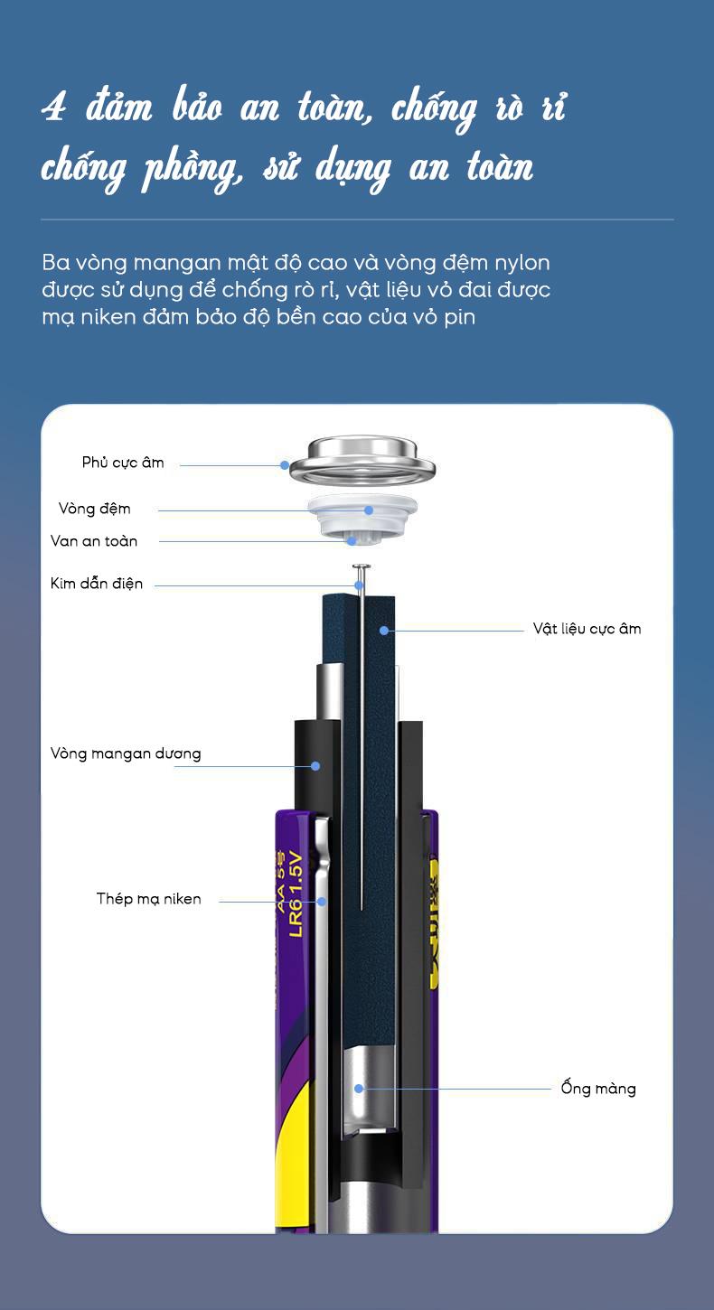 - Pin khô Purple Gold AA5 (Pin Tiểu) LR6 1.5V Super Heavy không chứa chì . Vật liệu bên trong có độ tinh khiết cao hơn, năng lượng điện mạnh hơn, thiết bị điện tiêu thụ nhiều năng lượng phù hợp hơn, hiệu quả hơn. Công nghệ "siêu lõi" tiên tiến, sức mạnh lâu dài hơn. Lữu trữ hơn 10 năm.