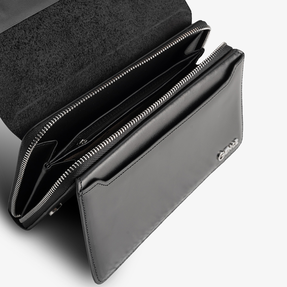 Ví cầm tay nam Gence da bò Box màu đen 1 khóa HT04