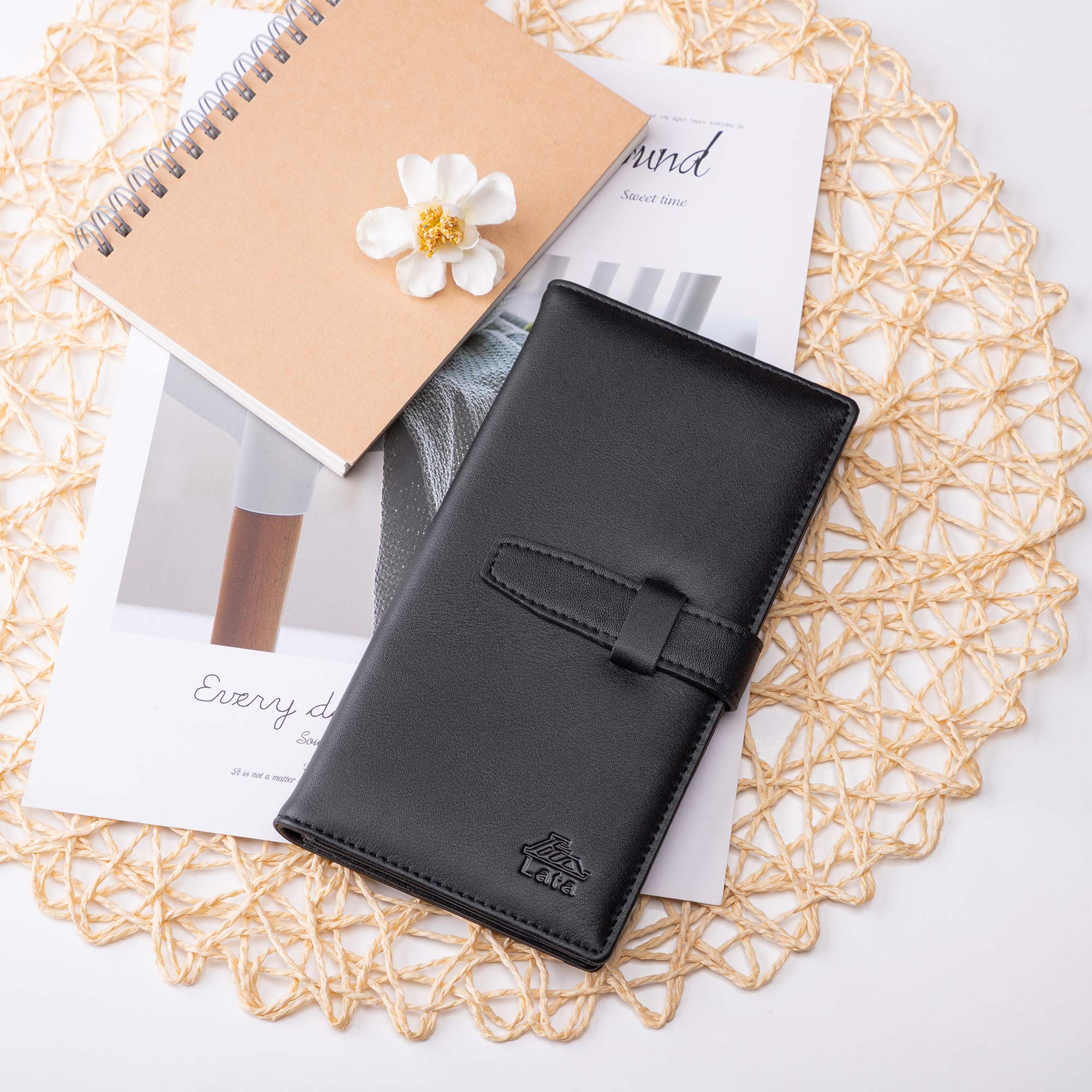 ✨Ví dài cầm tay LATA LVN78, 15 ngăn, đựng vừa 12 thẻ namecard và tiền, phù hợp đi làm, đi chơi, đi họp, da bò thật 100% (10cm x 19cm)