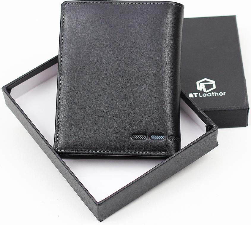 ✨Ví đứng da bò nam cao cấp AT Leather 062 (12 x 9.5 cm) - Đen