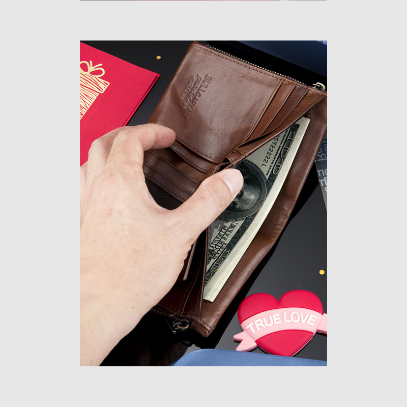 Ví đứng da bò thật 100% mẫu ví màu nâu sang trọng tại Leather20
