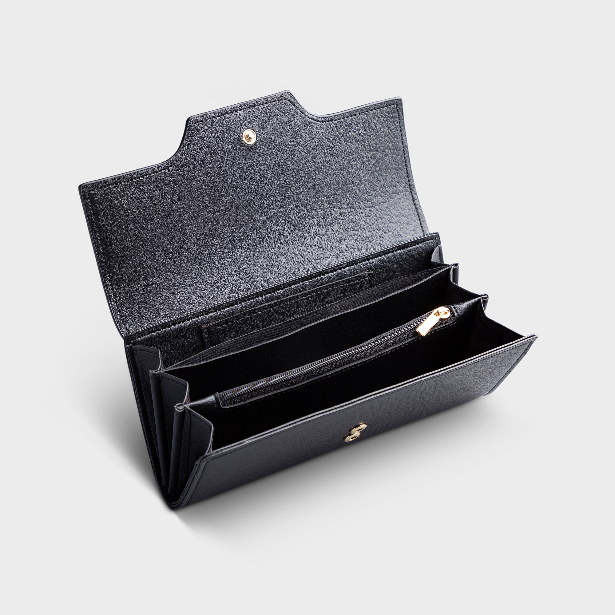 Kích thước: Chiều cao 13.0cm x Chiều ngang 21.0cm x Chiều rộng 4.0cm Ví cầm tay có dây đeo tay tháo rời được Có hai vách ngăn đựng thẻ và điện thoại Dây khóa kéo