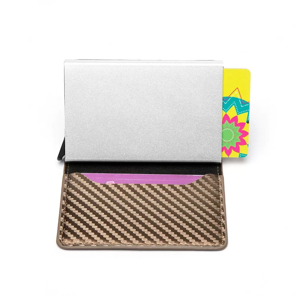 - Số lượng ngăn: bóp da gồm có hộp kim loại đựng được 6 thẻ tín dụng, ngăn để tiền giấy, và các ngăn ngoài để thẻ rất tiện lợi