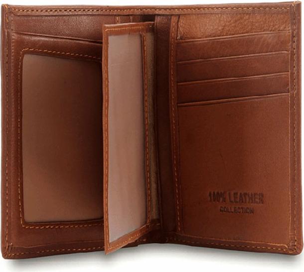 Ví/Bóp nam Huy Hoàng da bò kiểu đứng sọc ngang màu nâu 2140