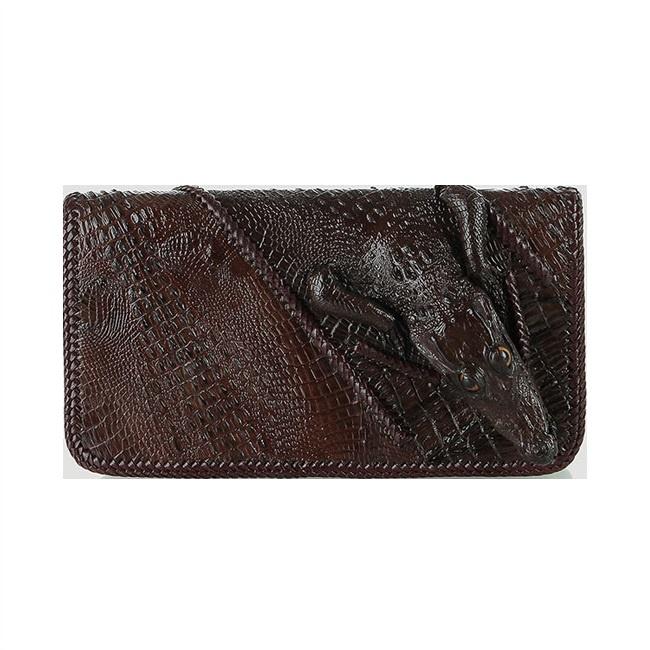 - Tên sản phẩm: Ví nữ da cá sấu Huy Hoàng nhiều ngăn đầu cá sấu đan viền màu nâu đất HP3731