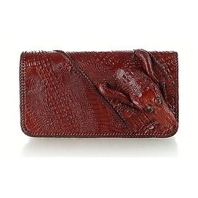 ✨Ví nữ da cá sấu Huy Hoàng nhiều ngăn đầu cá sấu đan viền màu nâu đỏ HP3733