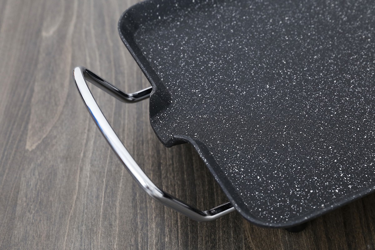 Lớp phủ chống dính đá hoa cương giúp bề mặt bếp nướng không bám dính thực phẩm, dầu mỡ; việc vệ sinh dễ dàng hơn nhiều loại bếp khác.