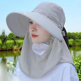 Mũ Nón Chống Nắng Vành Rộng Khăn Choàng Bảo Vệ Mặt Cổ Chống Tia UV Vành 8,5cm