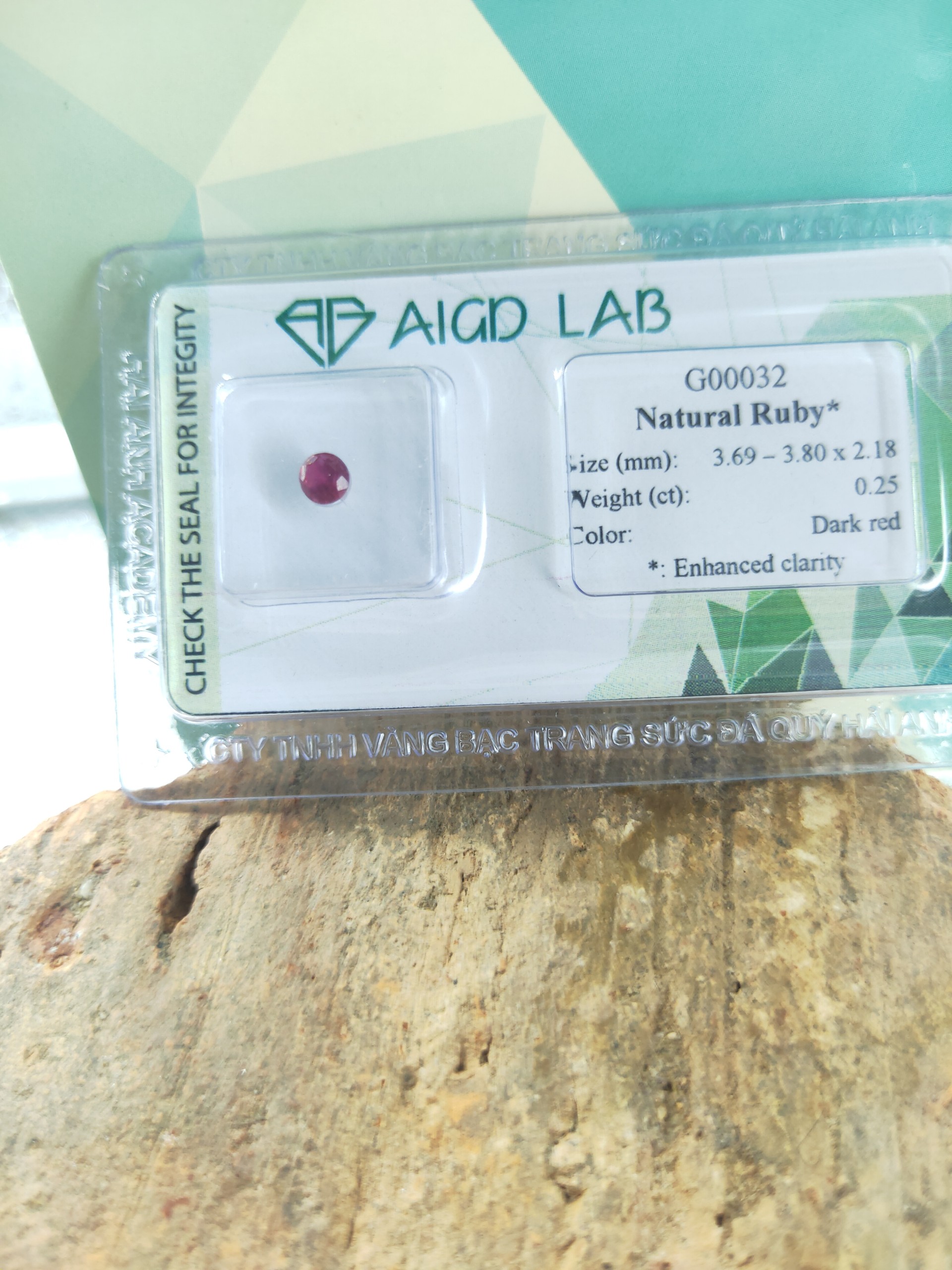 - Tên sản phẩm: Viên Ruby thiên nhiên kiểm định AIGD LAB , đá phong thủy.