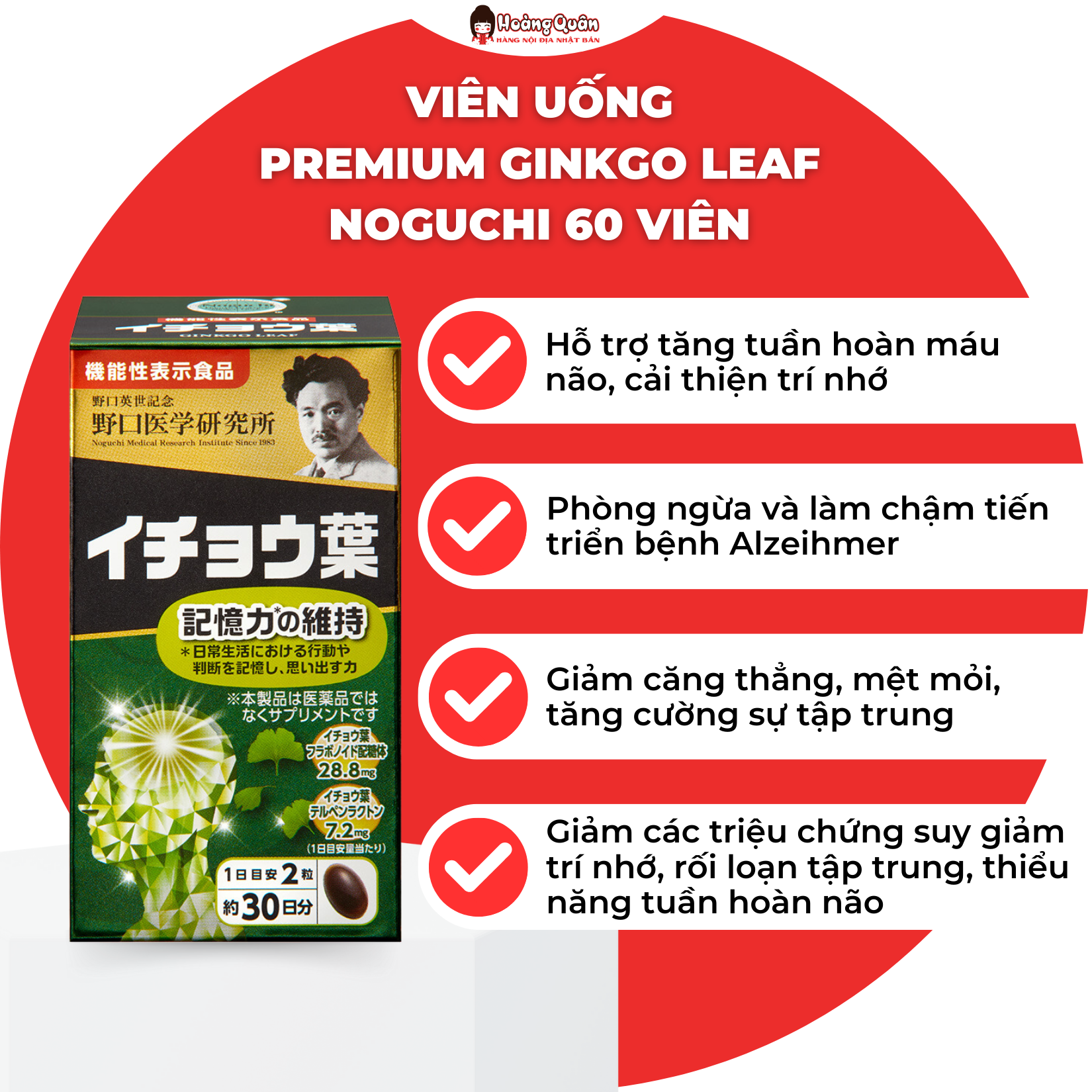 Hướng dẫn sử dụng viên uống bổ não Premium Ginkgo Leaf Noguchi 60 viên