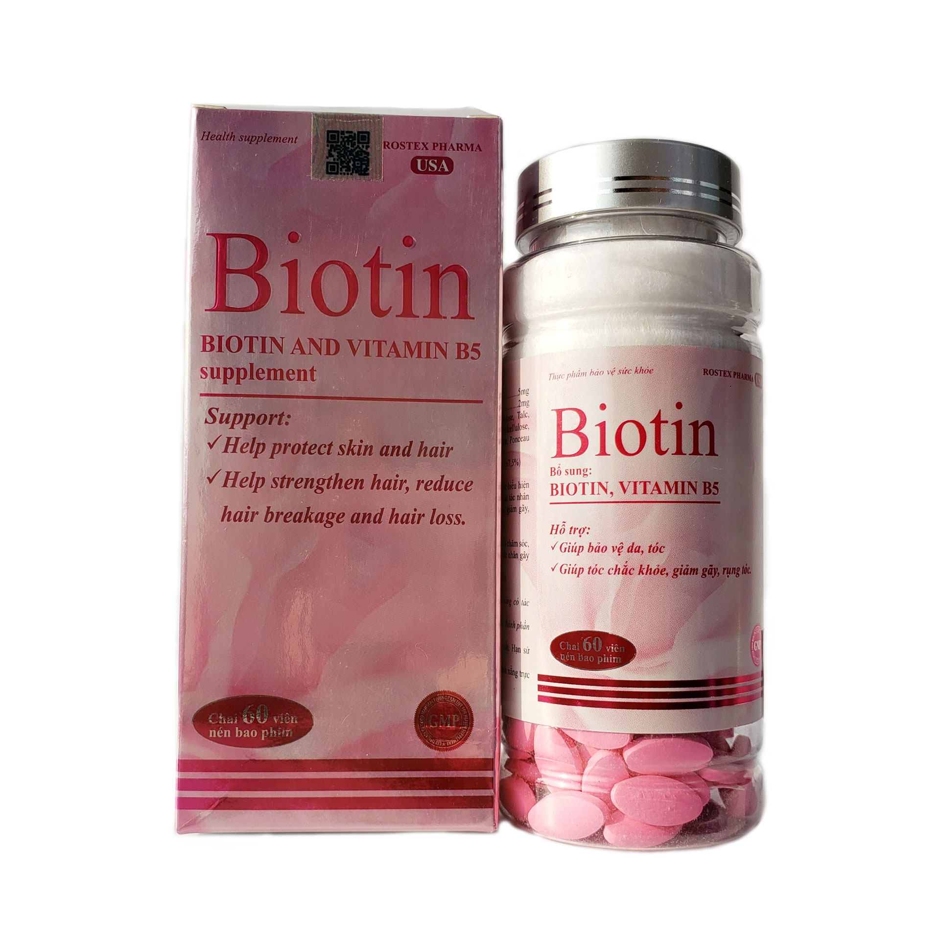 ✨Viên uống bổ sung Biotin Vitamin B5 giúp bảo vệ da chăm sóc tóc Rostex Hộp 60 viên