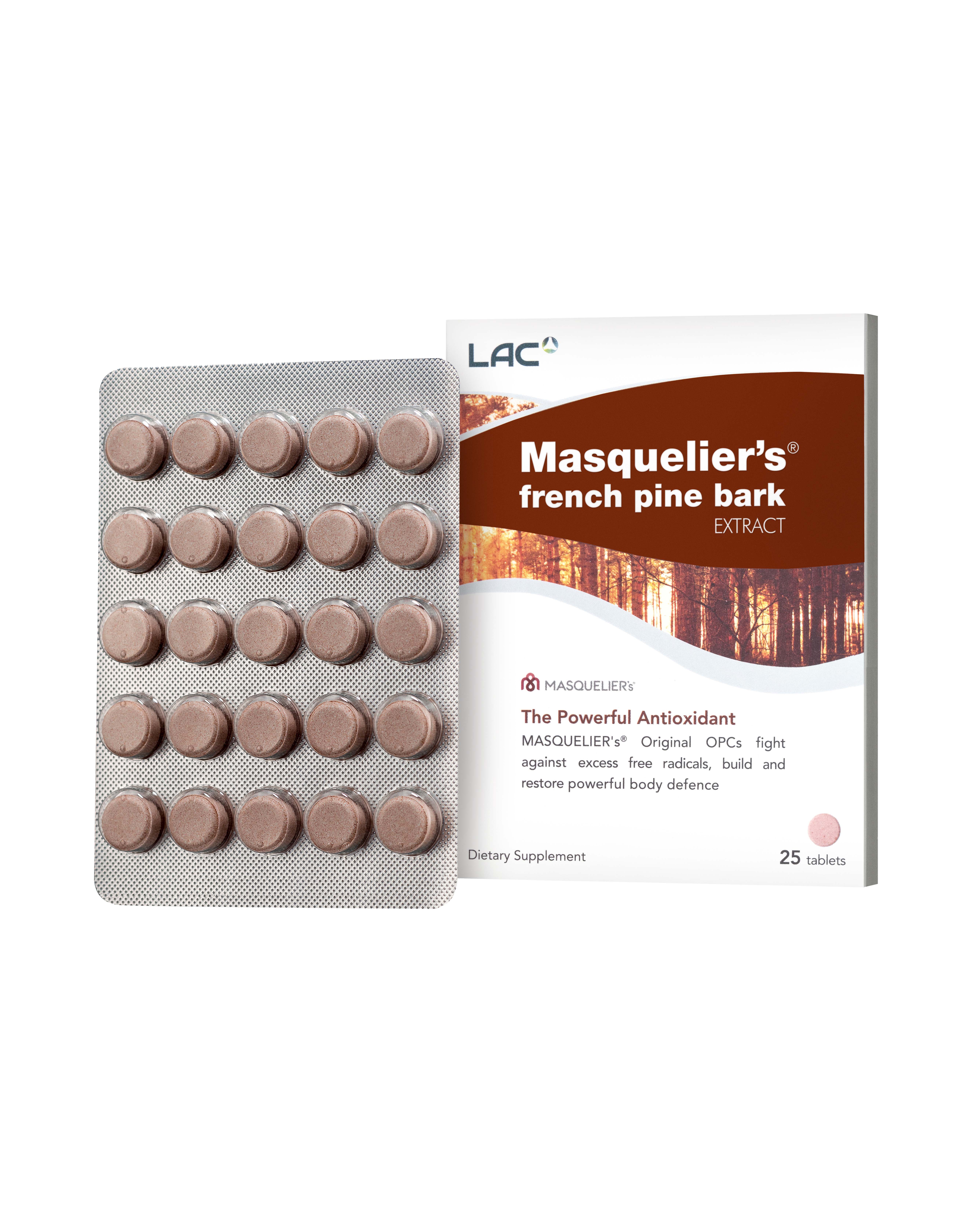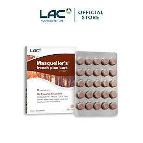 VIÊN UỐNG CHỐNG OXY HÓA LAC MASQUELIER CHIẾT XUẤT VỎ THÔNG PHÁP (25 VIÊN) với hợp chất Oligomeric Proanthocyanidin Compounds (OPCs) độc đáo được phát hiện bởi nhà khoa học đột phá - Giáo sư Jack Masquelier và là sản phẩm đầu tiên được nghiên cứu, chứng minh rộng rãi trên thế giới. Hợp chất OPCs độc đáo có trong mỗi viên nang uống giúp cơ thể đạt được liều lượng chất chống oxy hóa thích hợp thông qua cơ chế bảo vệ ba tác động an toàn nhằm: