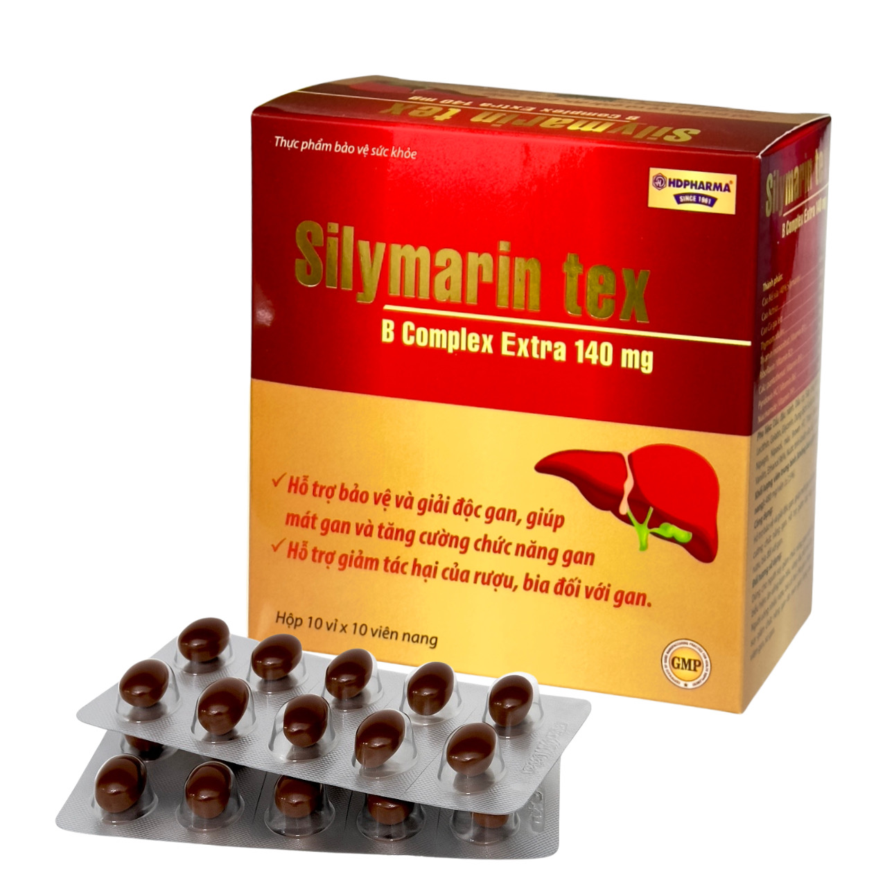 Bổ gan Silymarin Tex với thành phần thảo dược thiên nhiên như atiso, cà gai leo giúp mát gan, giải độc gan, hạ men gan hiệu quả. Sản xuất tại nhà máy HDPHARMA uy tín,