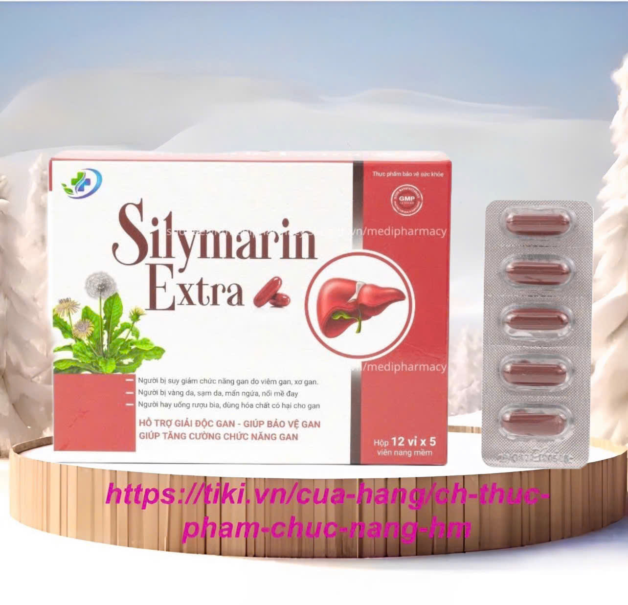 Mua tại TiktokViên uống bổ gan Silymarin Extra Vinaphar hỗ trợ giải độc gan, mát gan (H/60 viên) THÀNH PHẨN: Cao diệp hạ châ Cao cà gai Cao bồ công Cao xạ đ Cao tam thấ Cao kim ngân S Arginin vitamin vitamin vitamin vitamin Phụ liệu: gelatin, chất làm ẩm glycerine, chất độn sorbitol, chất bảo quản, chất tạo hương tổng hợp, chất chống oxy hóa, chất làm bóng, dầu đậu nành, dầu cọ, phẩm màu tổng hợp, nước tinh khiết vừa đủ. CÔNG DỤNG: