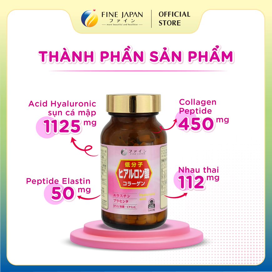 Mua tại Tiktok► Viên uống Hyaluron Collagen & Elastin FINE JAPAN ngăn ngừa lão hoá lọ 540 viên ► KHỐI LƯỢNG TỊNH: 81g (150mg x 540 viên) ► THƯƠNG HIỆU: FINE JAPAN ► XUẤT XỨ: Nhật Bản ► ĐỐI TƯỢNG SỬ DỤNG:
