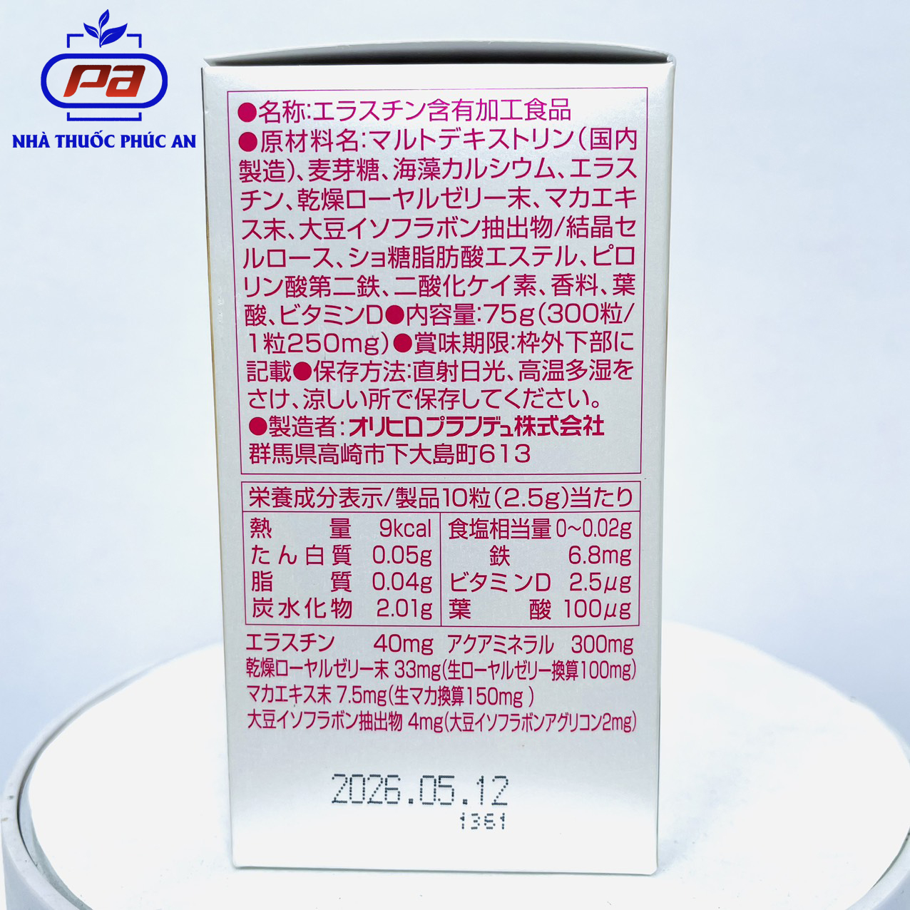 1. Thông tin chi tiết sản phẩm: - Hãng sản xuất: Orihiro. - Xuất xứ: Nhật Bản. - Quy cách: Dạng viên, lọ 300 viên, 75g. - Hạn sử dụng: 24 tháng kể từ ngày