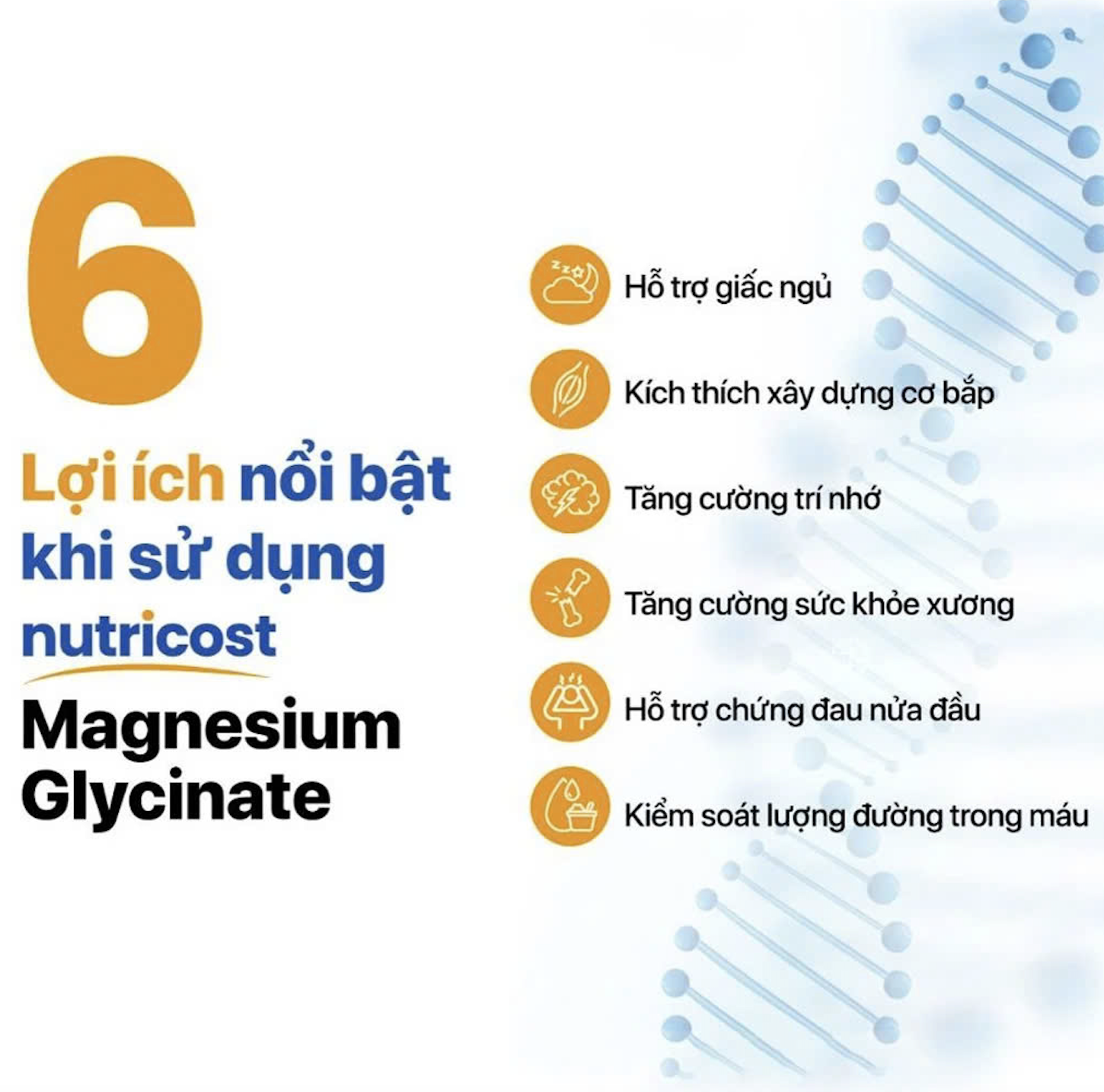 - Viên uống Magnesium của hãng Nutricost giúp cung cấp cho bạn 420mg Magie. Bên trong bao gồm Magie Oxide và Magie Glycinate (còn gọi là Magie Bisglycinate). Dòng Magie Bisglycinate có khả năng hấp thụ nhanh hơn nhiều lần các loại magie thông thường khác, không gây buồn nôn, tiêu chảy hay khó chịu dạ dày.