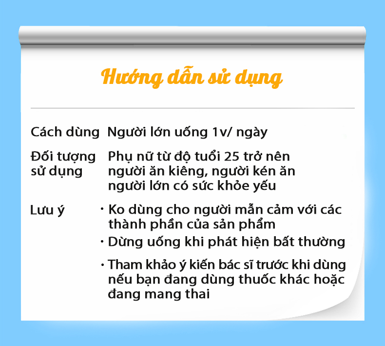 - Thực phẩm này không phải là thuốc CÔNG DỤNG