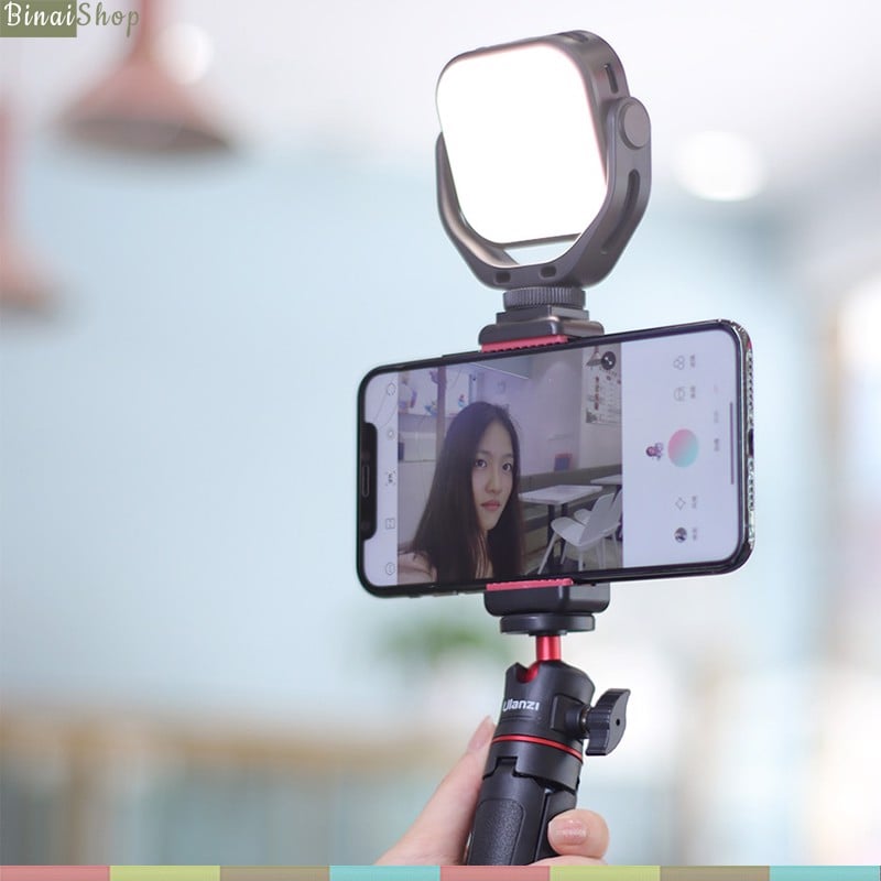 - Thiết kế thân máy nhỏ gọn với công suất 5W và nhiệt độ màu có thể điều chỉnh 3200-6500K, tích hợp giá hình chữ U, điều chỉnh xoay 360, hỗ trợ chụp đa góc, khoảng cách chiếu sáng khoảng 3-6 mét.