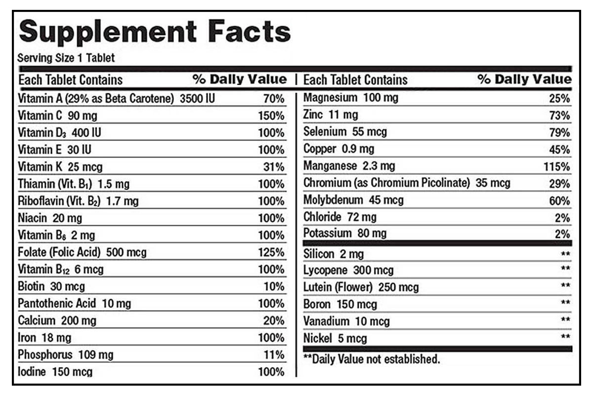 Mỗi viên Daily Multi Kirkland chứa:
