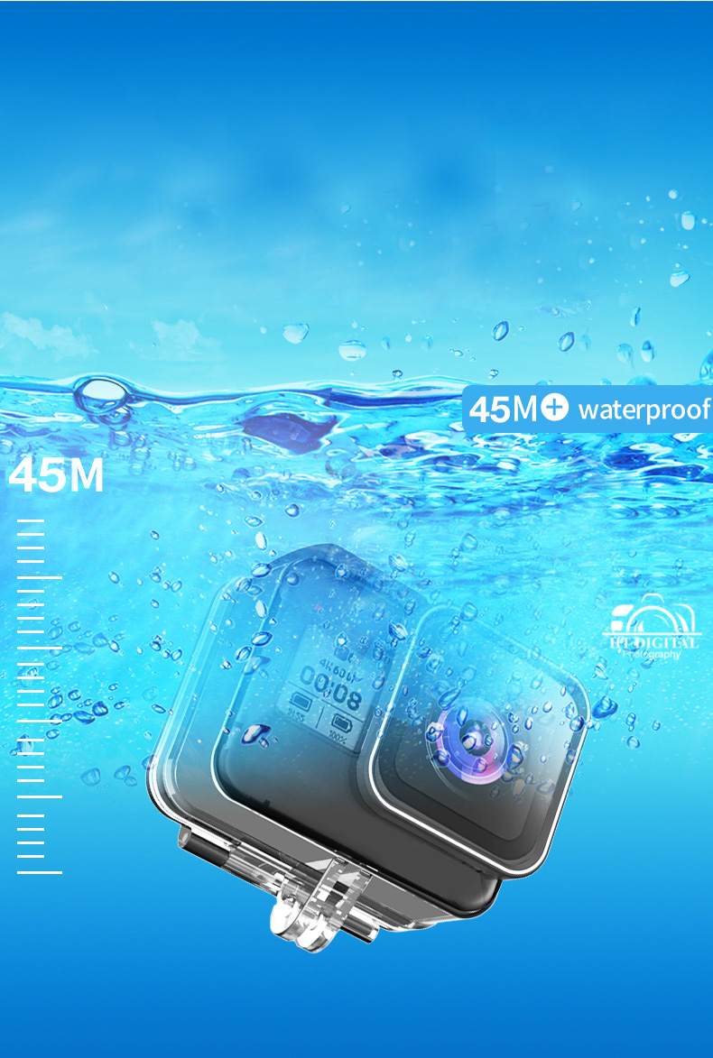 Nó bảo vệ khỏi bụi bẩn và các mảnh vụn bay trong quá trình hành động cường độ cao cộng với nó, nó chống nước xuống tới 45m và hoàn hảo cho lặn nước sâu.